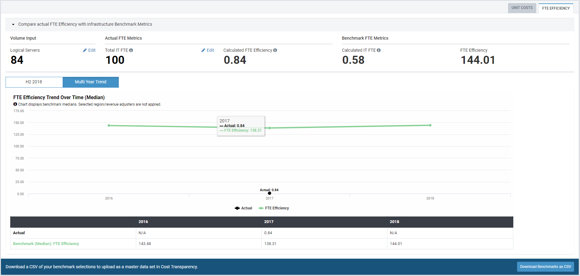 The FTE Efficiency Trend Over Time (Median) looks like this: